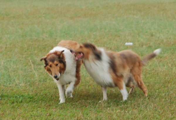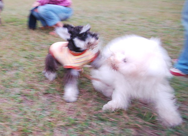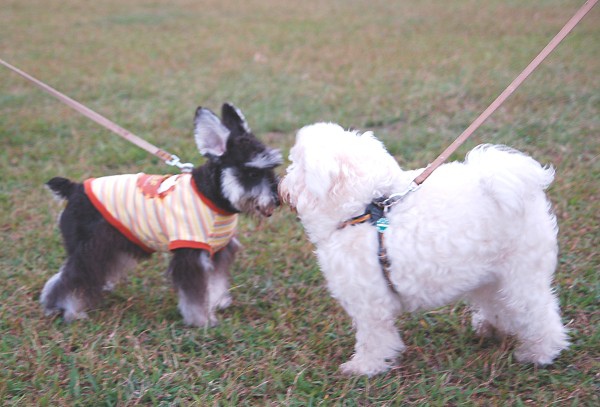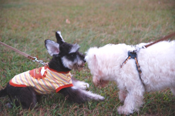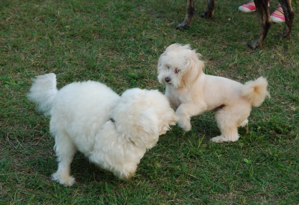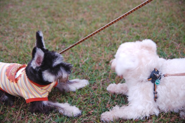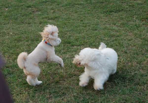 一隻古代追著小米玩,百吉也硬要跑進去當第三者,情況當場演變成古代追著小米、小米追著百吉,百吉滿場唉唉亂叫,看的路人哈哈笑,主人只能在旁邊苦笑的場面。