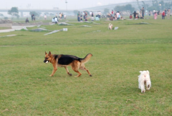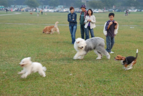 這次來,哇!滿坑滿谷的狗狗,各式各樣、大隻小隻通通都有,不但令我大開眼界,陳百吉更是興奮得不得了,滿場狂奔,四處去找他的狗朋狗友們遊玩。