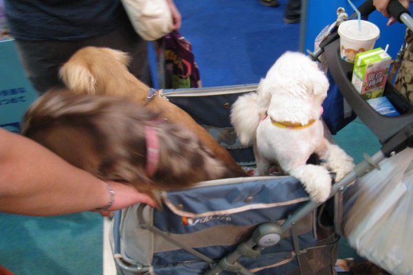 這種時候,推車就更好用了,把狗拎出來,把買的東西丟進去,超方便的。