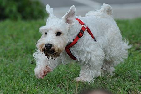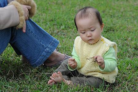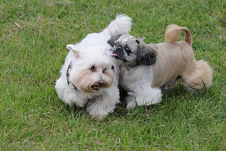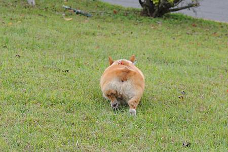 一定要爬到草地上,想想:反正回家兩隻都得洗澡,就隨她了。